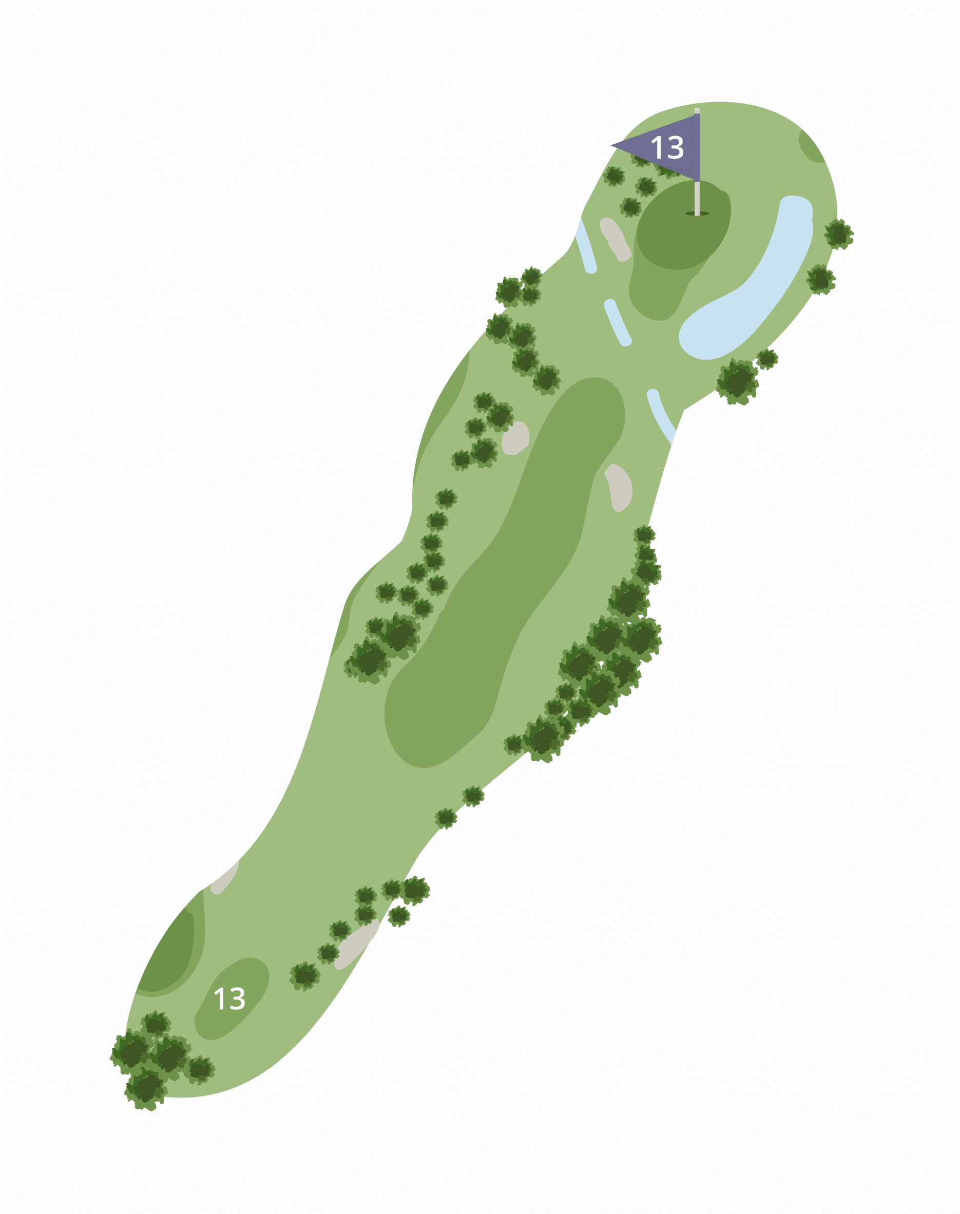 A short but tricky 306yd s.i.17 par 4. Perhaps an iron off the tee is prudent here as there are bunkers to the left and right of the fairway and a water ditch crosses the fairway at about 260yds. A sloping difficult green awaits.